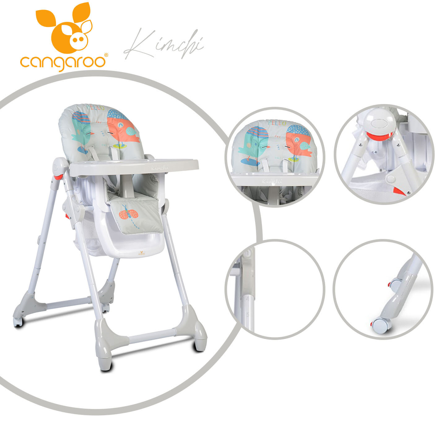 Столче за хранене Cangaroo Kimchi, сиво-8WW9N.jpg
