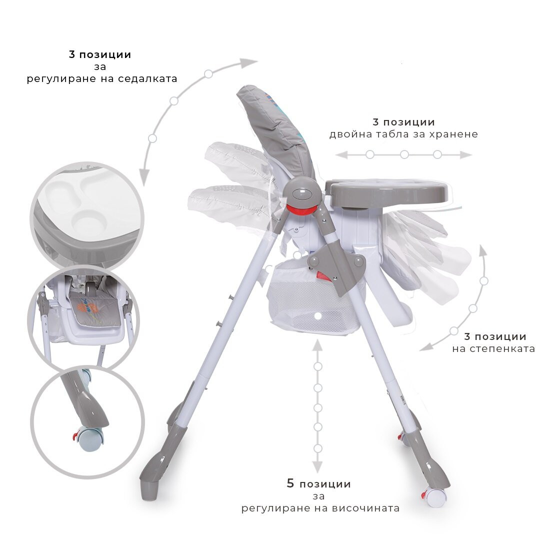 Бебешки и детски магазин "СЛАДУРЧЕТА" и марката "Cangaroo" представят на Вашето внимание детски стол за хранене със следните характеристики: