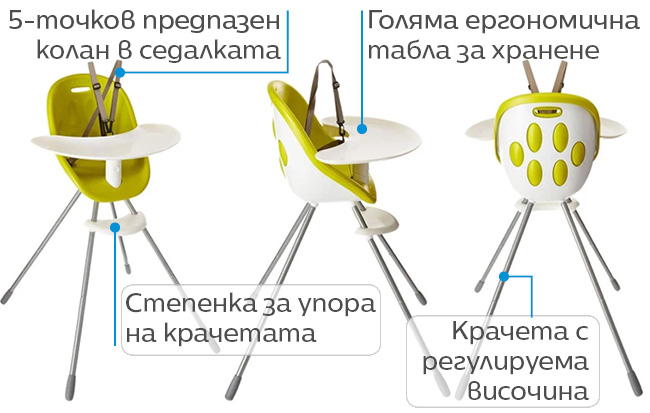 С регулируеми на височина крачета, за да се развива заедно с вашето дете;