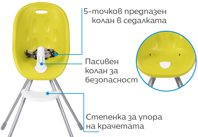Може да се използва по 2 начина: - като столче за хранене: от 6 месеца (от момента, в който детето може да седи) до 3 години; - като детско столче – до 3-5 години или до 20 кг;