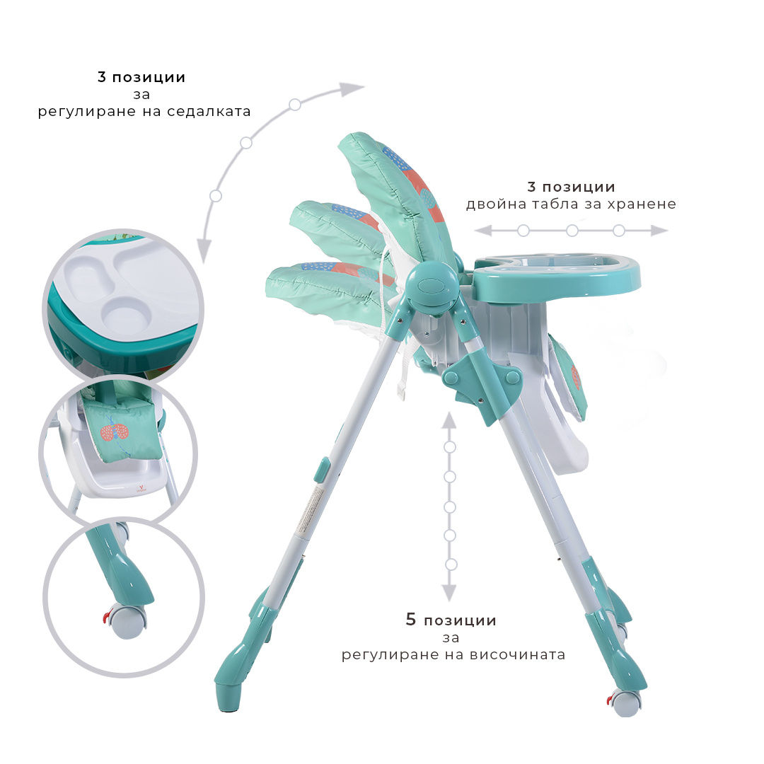 Бебешки и детски магазин "СЛАДУРЧЕТА" и марката "Cangaroo" представят на Вашето внимание детски стол за хранене със следните характеристики: