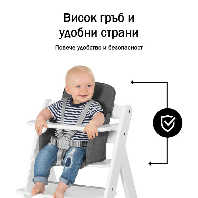 Осигуряващ комфорт и чудесна стабилност през първите месеци на употреба на столчетата за хранене;