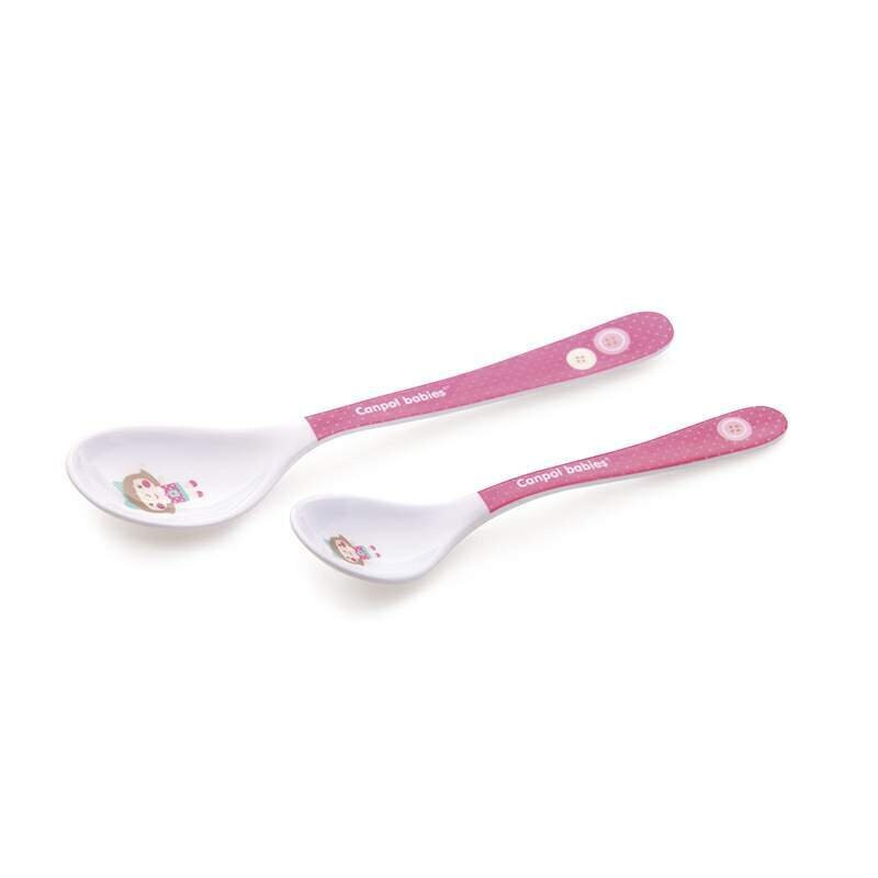 Mеламинови лъжички Canpol 9м+ Toys, розови, 2 бр.