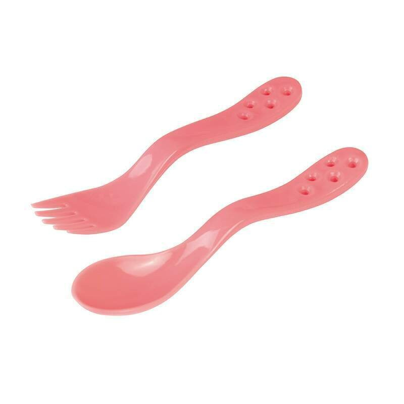 • Лъжичката и виличката са със заоблени форми, така че да не нараняват нежните бебешки венци