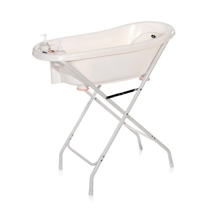 Комплектът включва: вана с отвор за оттичане и термометър, подложка за къпане;