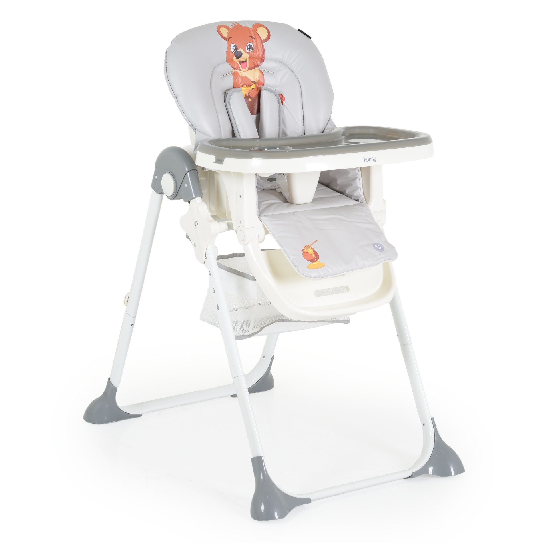 Детски стол за хранене Moni Hunny, мече сив