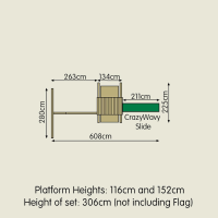 Височина на платформата: 116 см/152 см - дължина на улея за пързаляне: 228 см;