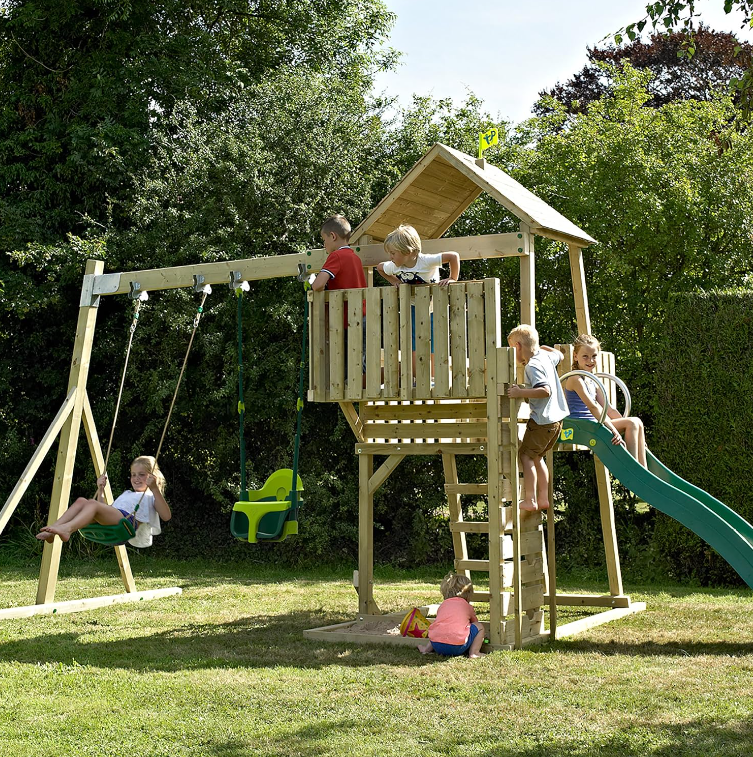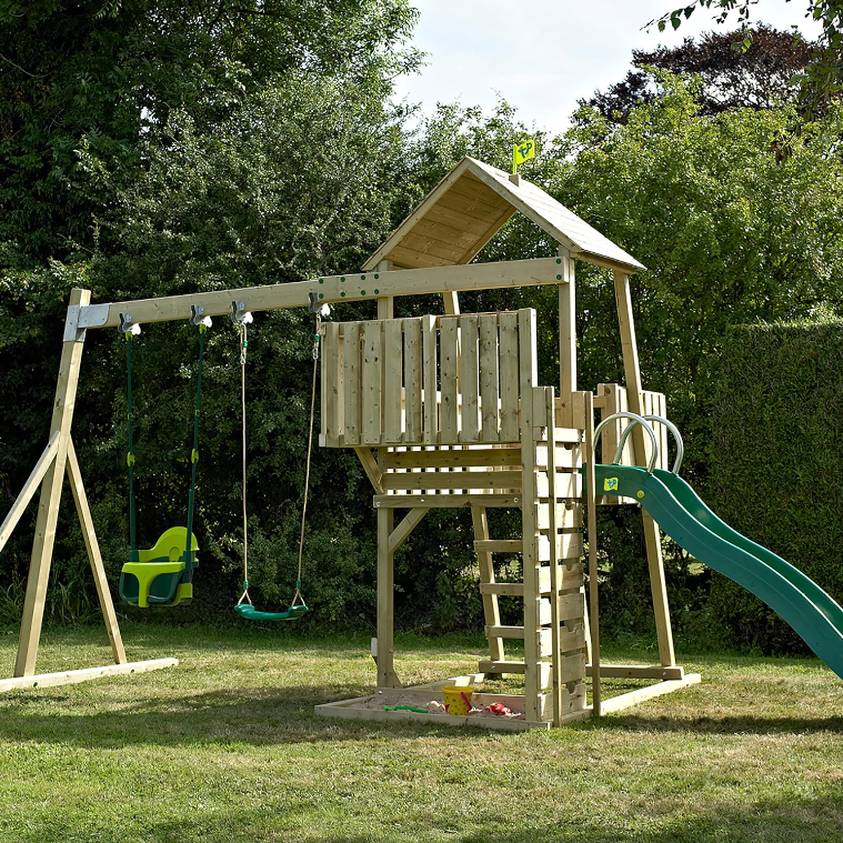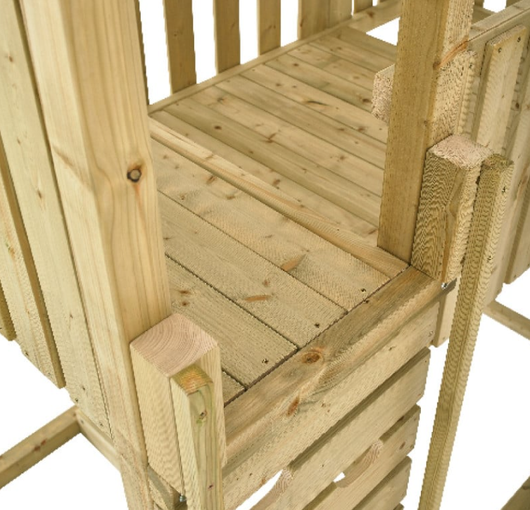 По-големите деца ще имат на разположение класическа седалка за люлеене, стена за катерене и стандартна стълба за катерене на двете платформи, разположени на 116 см и 152 см от земята, пързалка на вълни с дължина 228 см за бързо пързаляне;