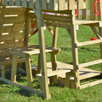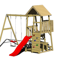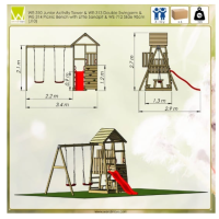 Площадката се предлага и с 4 железни котви, които трябва да бъдат поставени в земята и завинтени към дървените греди;