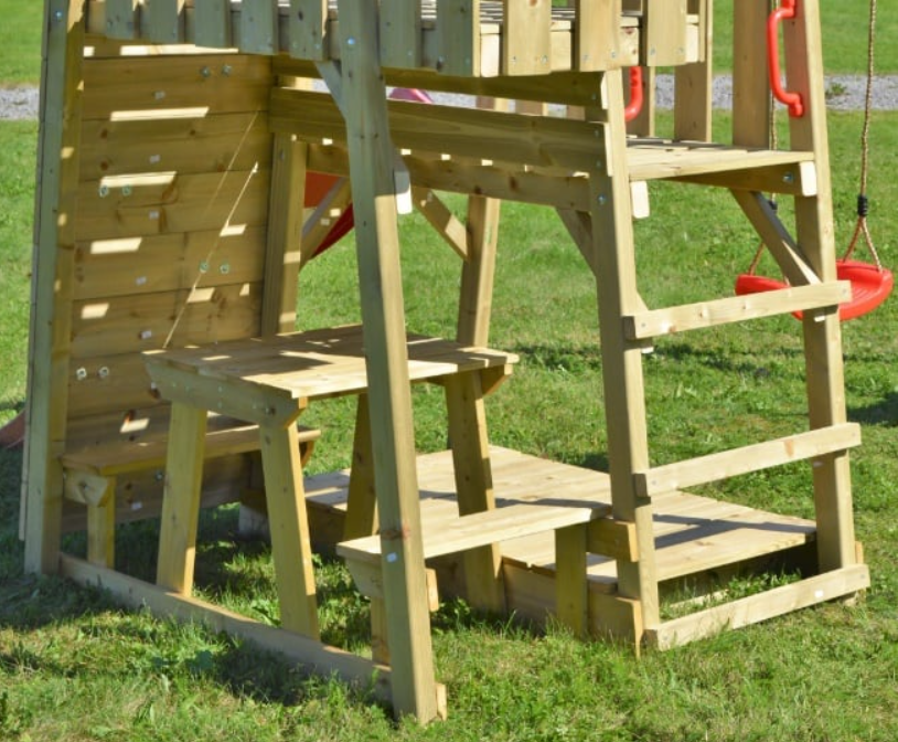 Под кулата има вградена маса за пикник с малък пясъчник, с капаци, които могат да се отварят след игра;