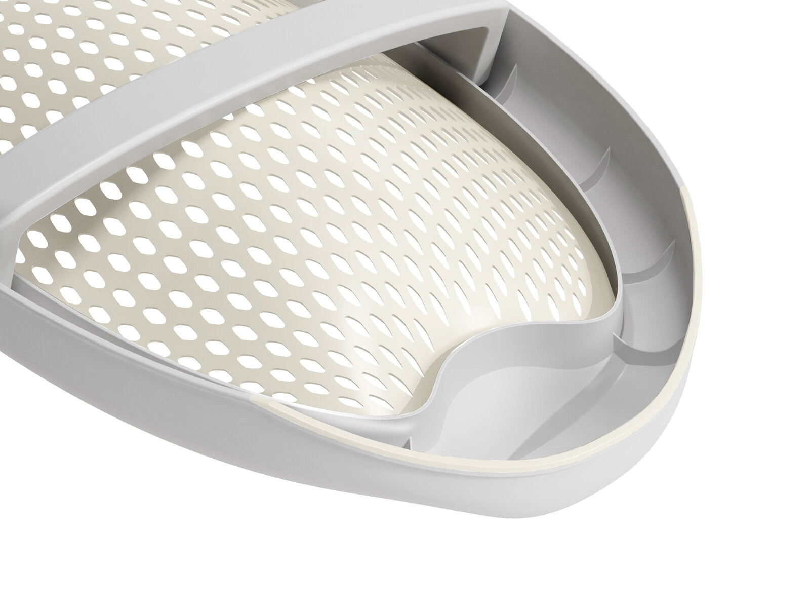 Ергономична поставка е изработена от мек перфориран каучук, който улеснява дишането и изплакването.