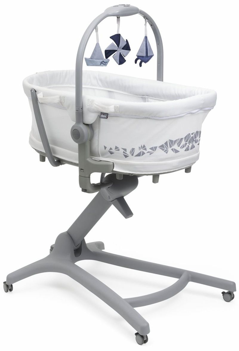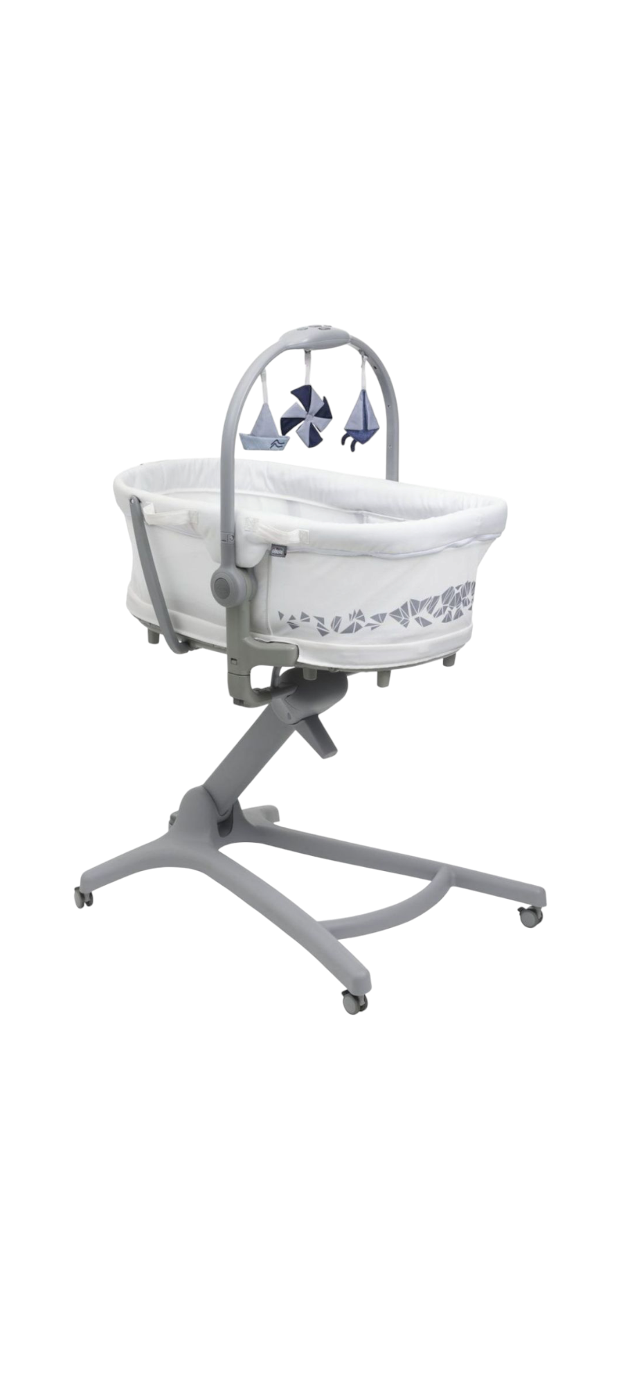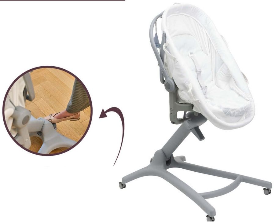 • 5 функции в едно: кош за новородено, самостоятелно стоящ кош, шезлонг, столче за хранене и първо столче;