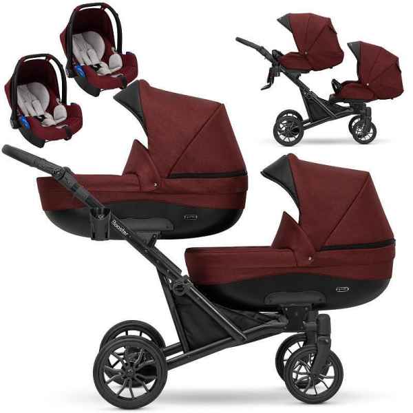Кош за новородено - 2бр: - подходящи за деца до около 6-ия месец; - дръжка за пренасяне на коша; - удължен вентилиран сенник; - регулируема облегалка; - възможност за монтаж както по посока на движението, така и срещу посоката на движение; - мека подплата, която може да се сваля и пере; - удобен матрак; - чувал за крачета за защита на детето от студа и лошото време;