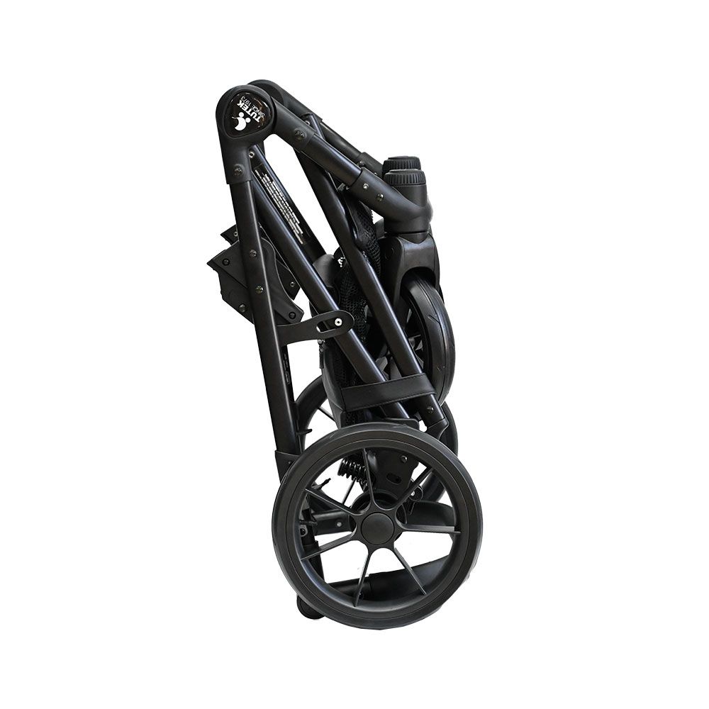 • Възможност за сгъване заедно със седящия кош (при монтиран кош по посоката на движение);