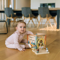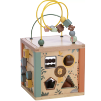 Голямо обучително дървено кубче със значителна игрова стойност за насърчаване на фината моторика и логическото мислене на децата;