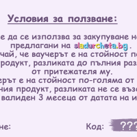 Ваучерът може да се използва за закупуване на всички стоки, предлагани на sladurcheta.bg;