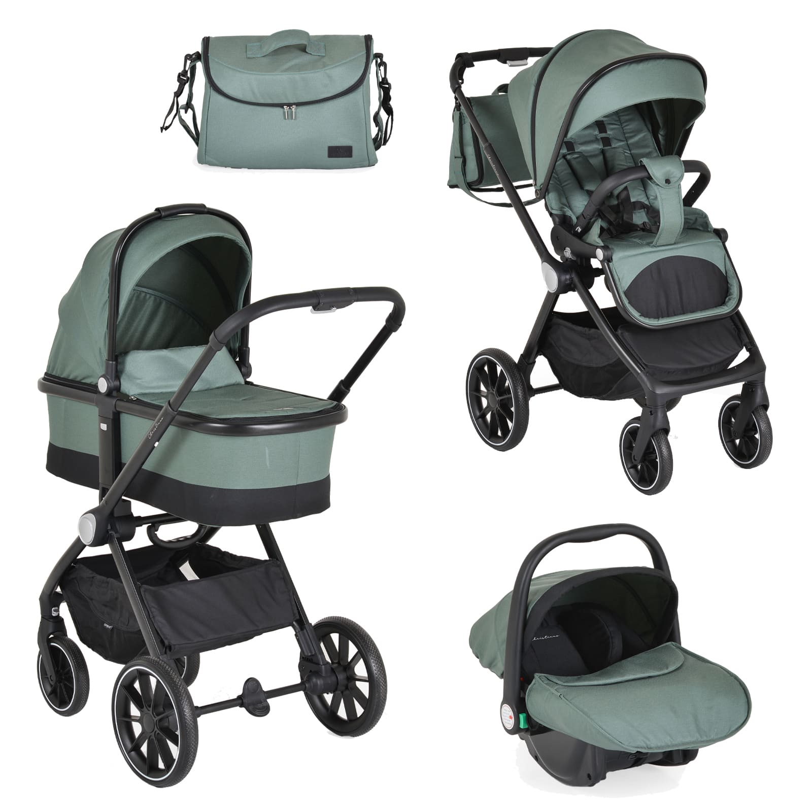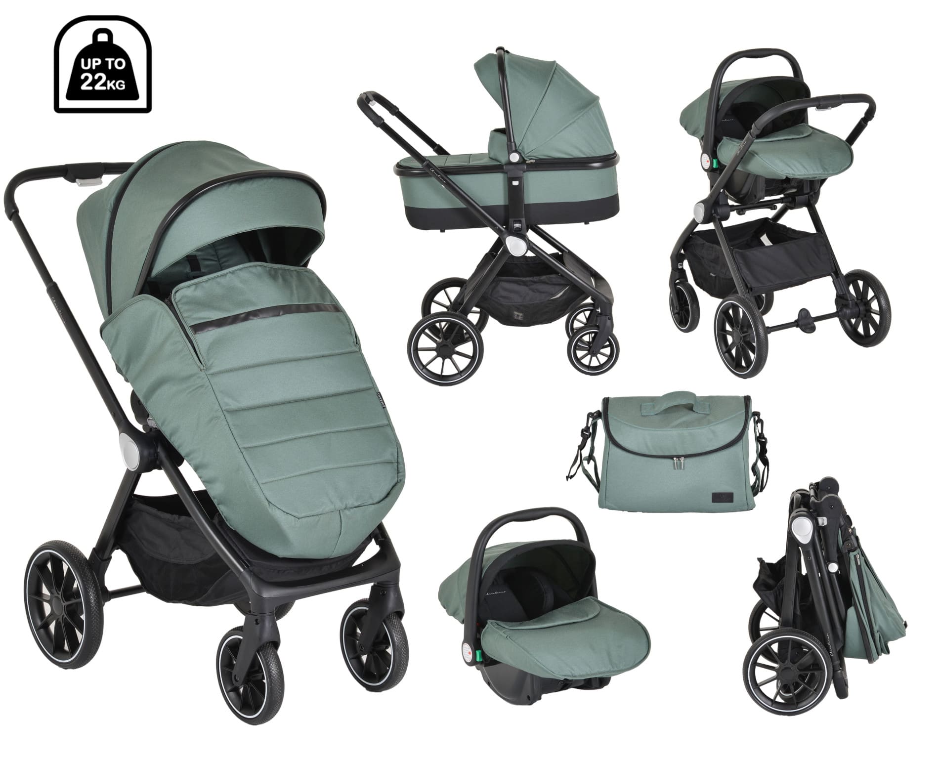 Съвместимо с рамата на количката, посредством адаптори, които са включени в комплекта;