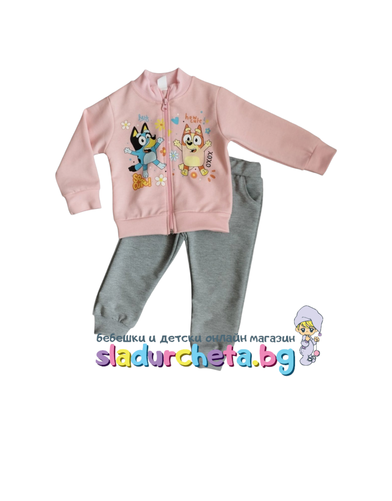 Суитшъртът е с дълъг ръкав в розов цвят с цветна апликация на Блуи;