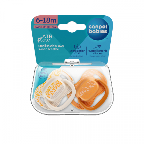 Силиконова залъгалка със симетрична форма Canpol Mountains, 6-18м, 2бр жълто-9Hich.jpg