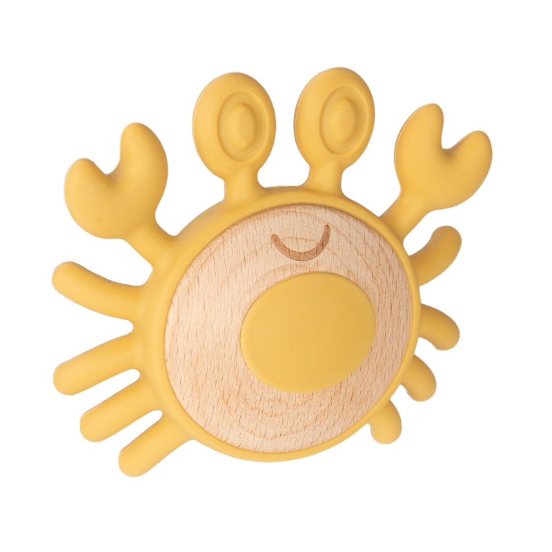 Дървената чесалка със силиконови елементи е идеалната първа играчка за бебето, както и незаменима помощ в трудния период на никнене на зъбки при най-малките;
