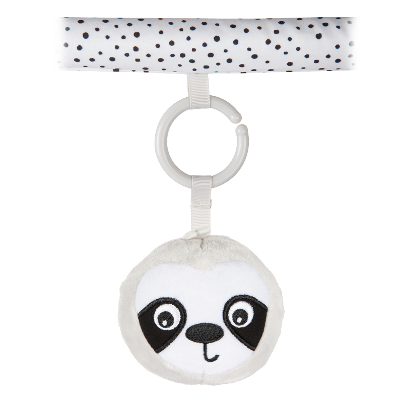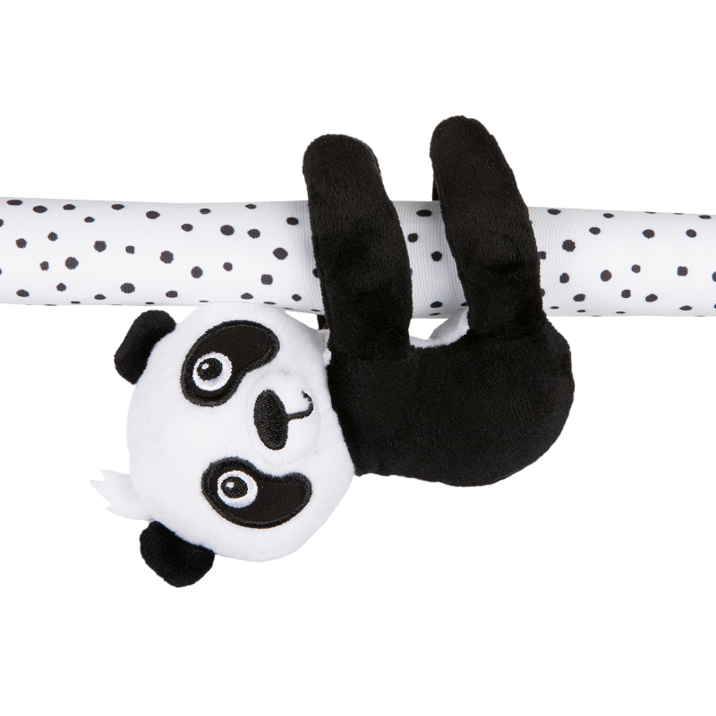 Панда със свирка и велкро лапи, благодарение на които можете да я закрепите навсякъде, дори на бебешката кошара;