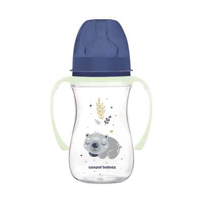 Комплектът включва: (1) биберон за всички възрасти, (1) шише 150 мл, (1) капачка, (2) капак;