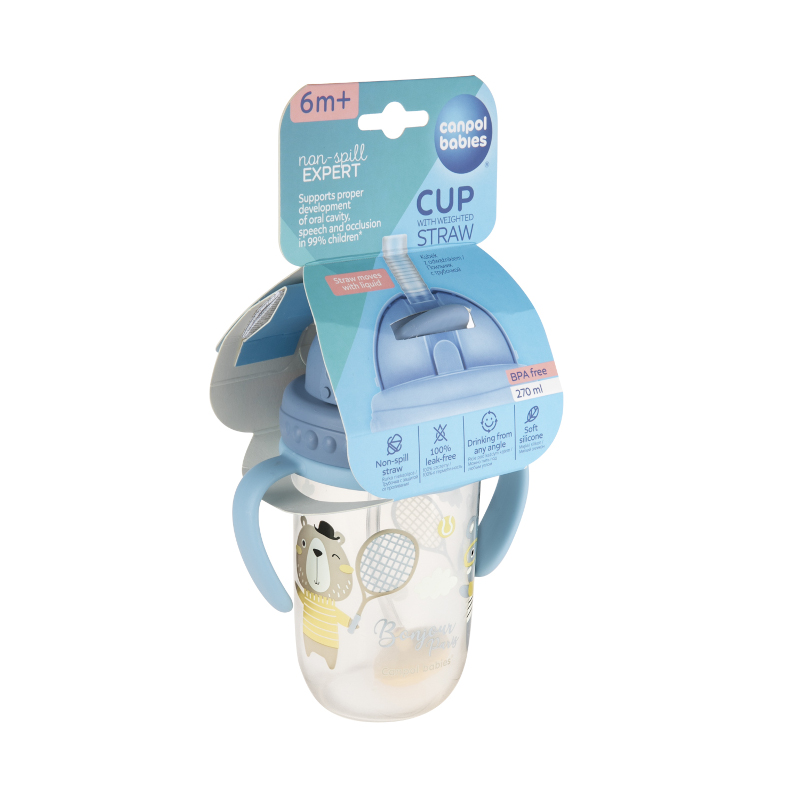 Уникалната силиконова сламка с тежест следва течността и детето може да пие до последната капка, независимо от ъгъла;