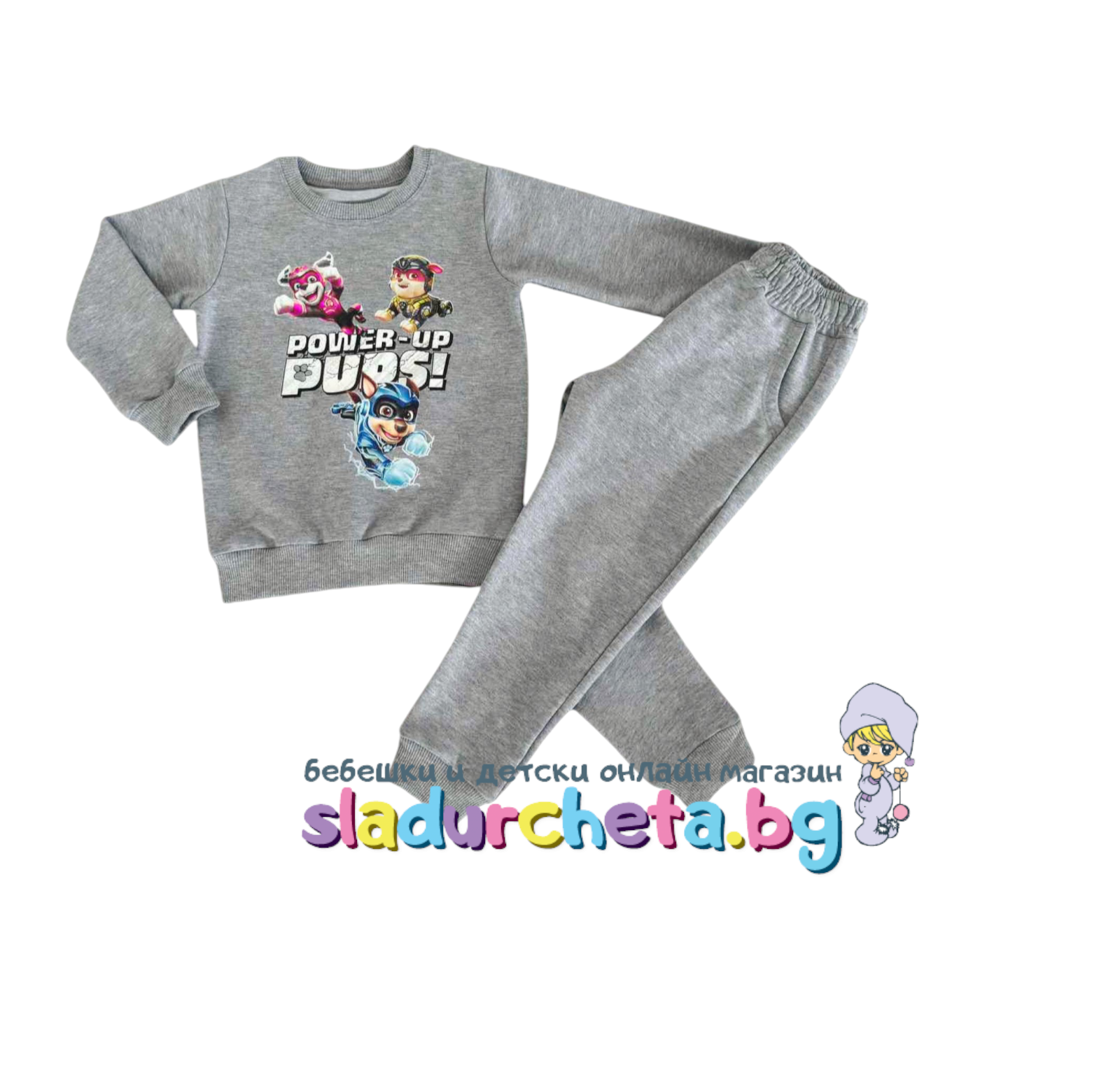 Блузата е с дълъг ръкав в сив цвят с апликация на Пес Патрул;