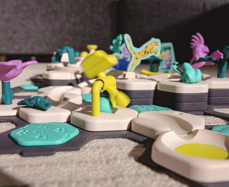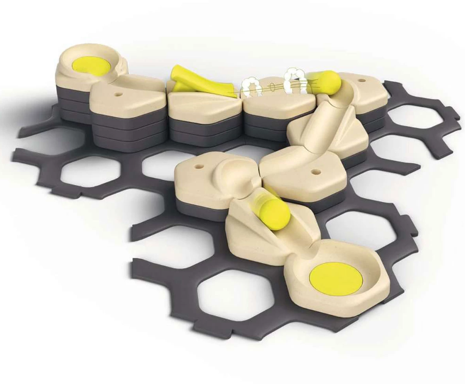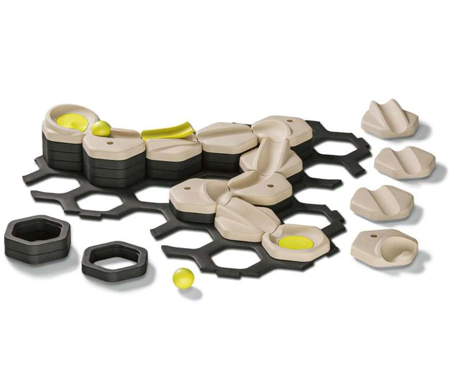 Насърчава ученето на децата, като стимулира техните двигателни умения и мислене при проектиране на мраморни вериги;