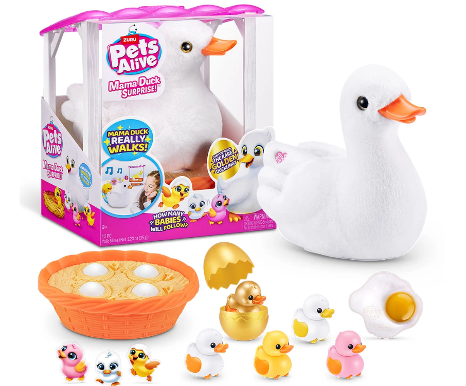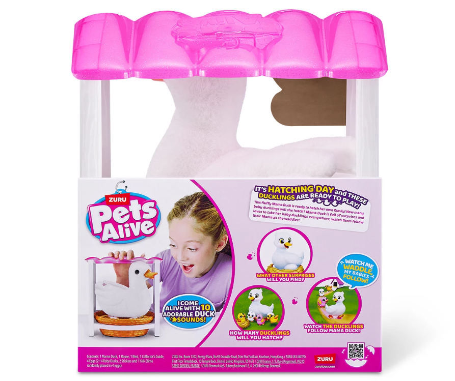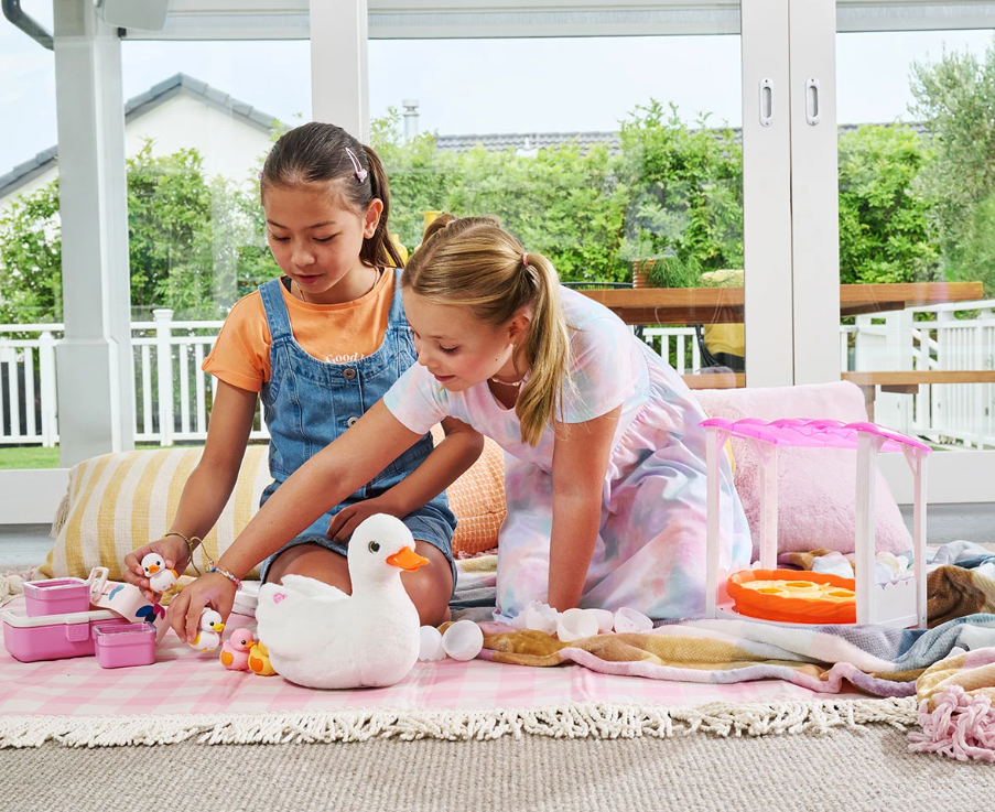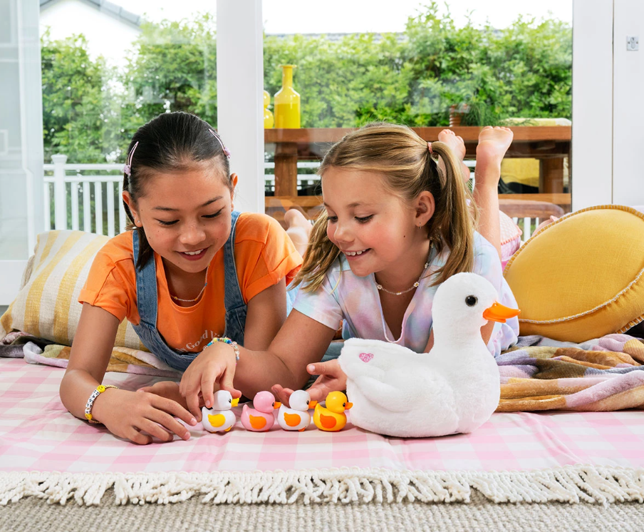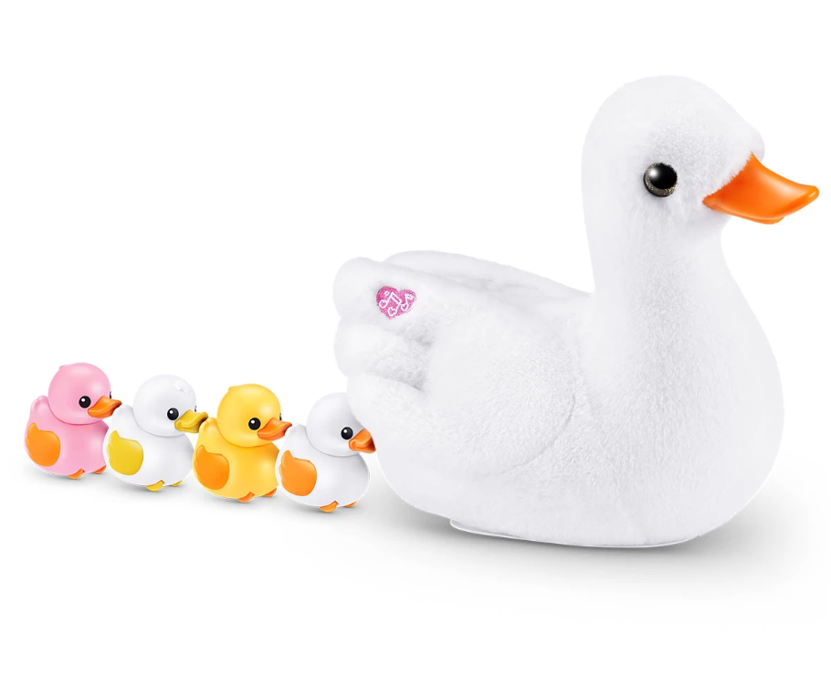 Натиснете розовото сърце на крилото на вашата мама патица, за да я чуете да издава истински патешки звуци!
