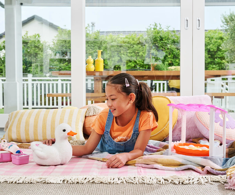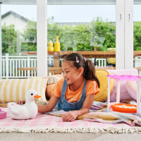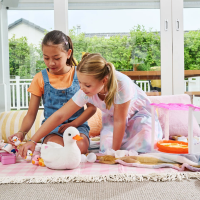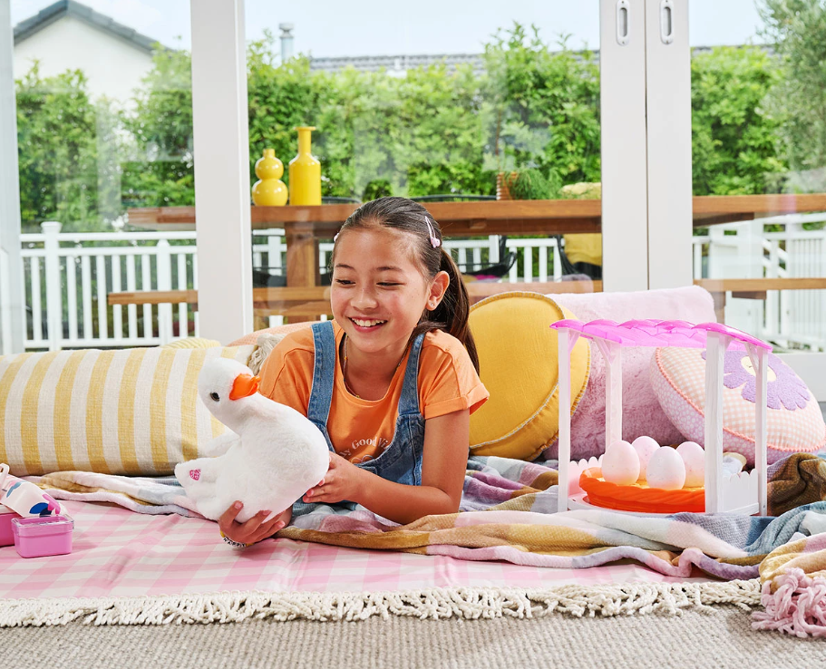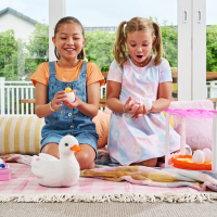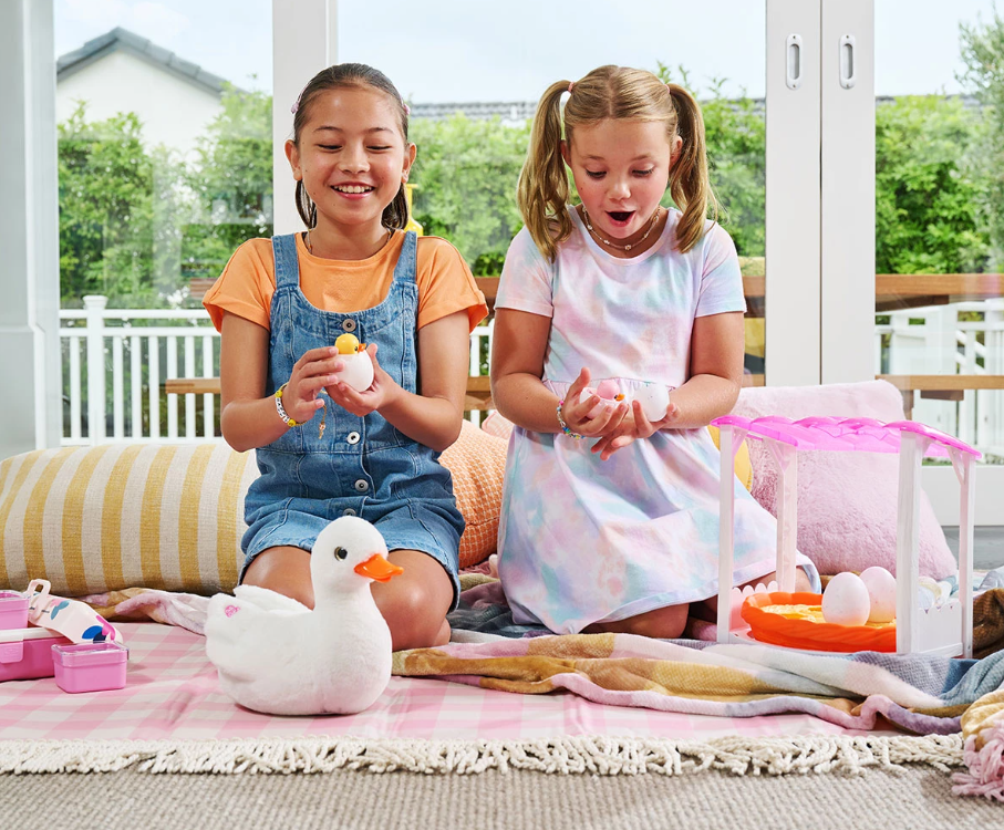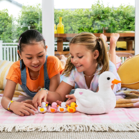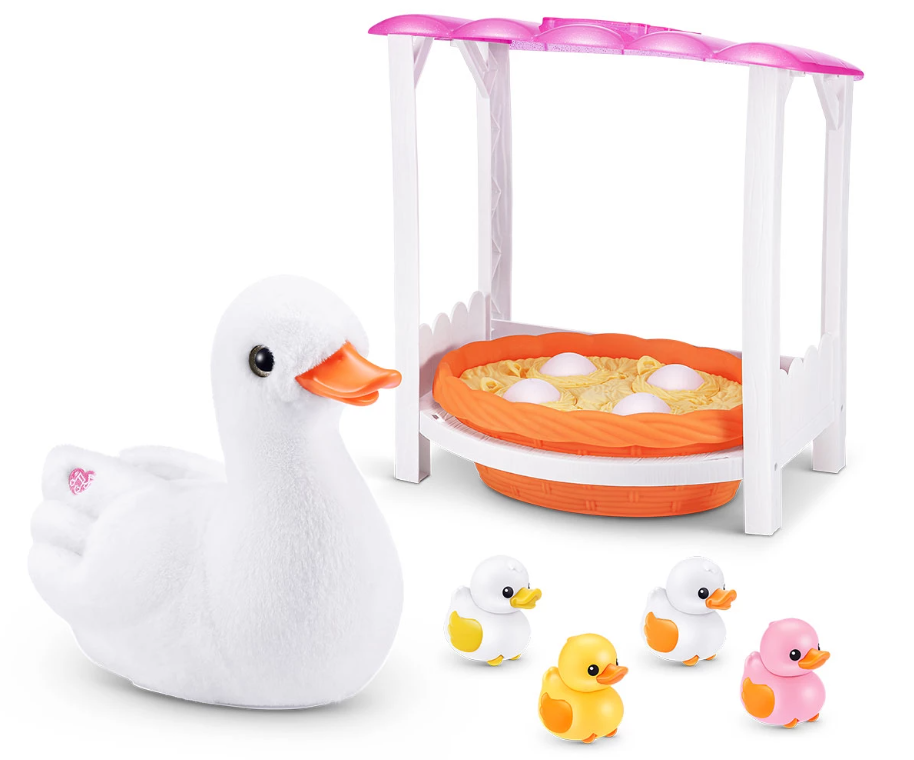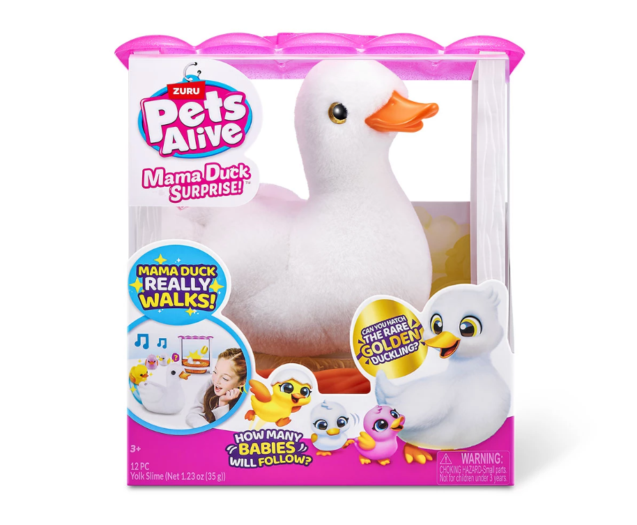 Натиснете розовото сърце на крилото на вашата мама патица, за да я чуете да издава истински патешки звуци!