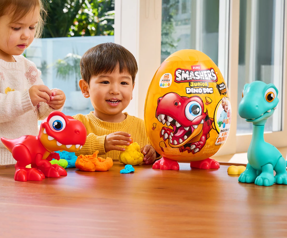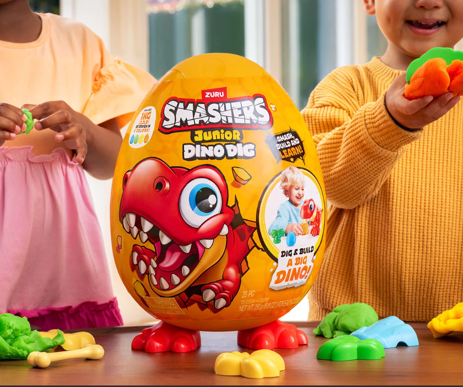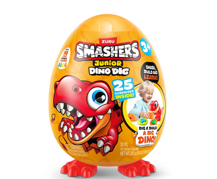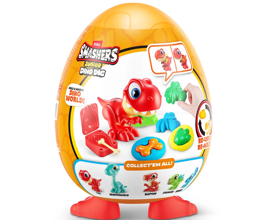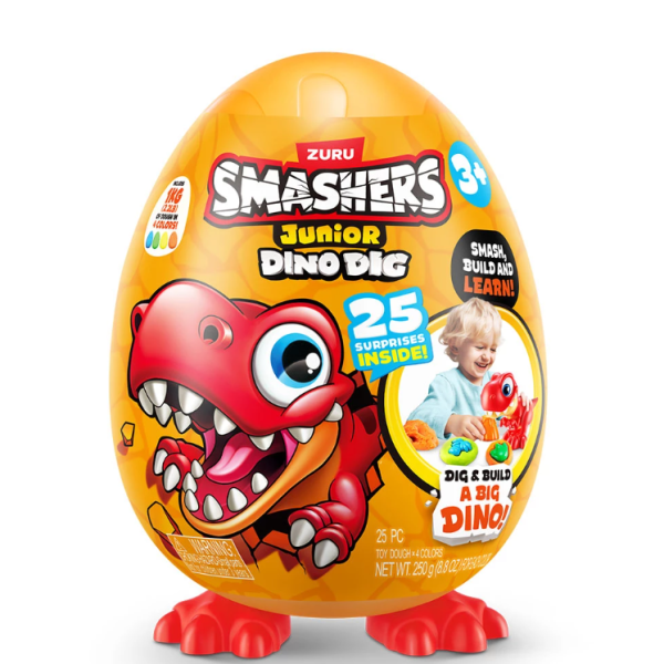Всяко Smasher Junior Dino Dig Egg се доставя с 1 динозавър, който може да се сглоби;