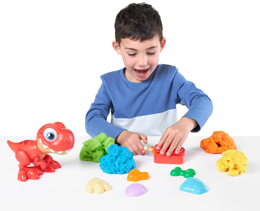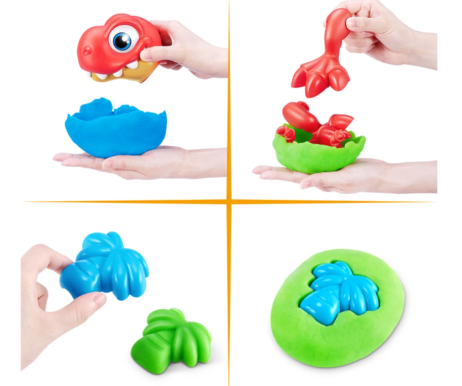 Мачкането и формоването на включения Dino пластилин е невероятно за развиване на фините двигателни умения на децата и за изграждане на тяхната креативност;