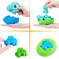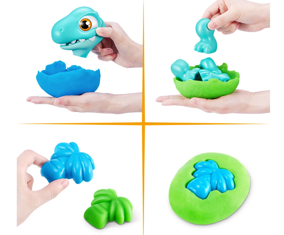 • 25 изненади вътре: много изненади за изследване, включително 4 цвята пластилин, 6 формички, стикери и изключително сладък Дино;