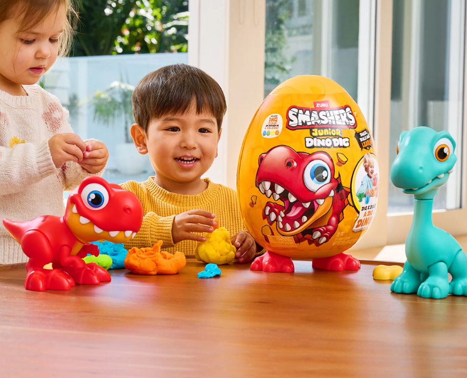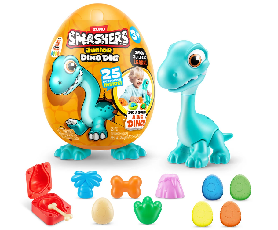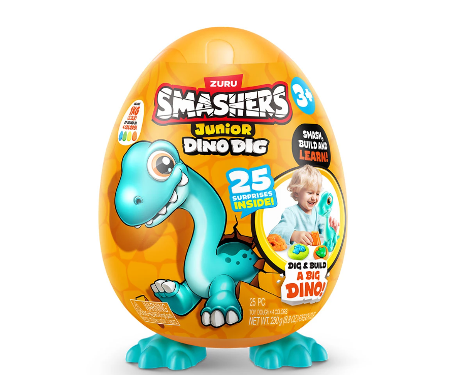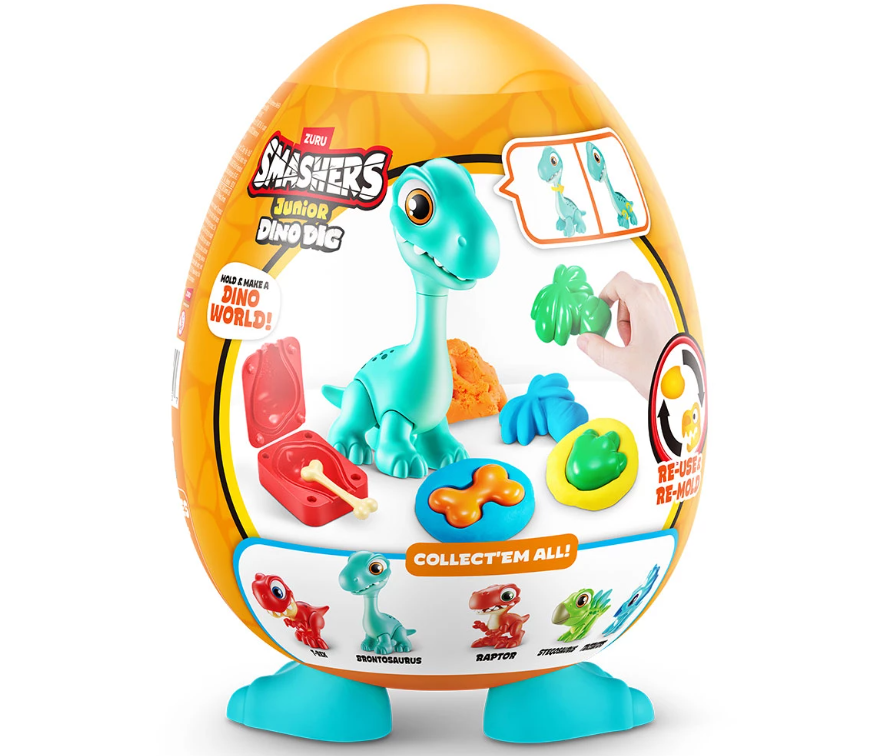 • Всяко Smasher Junior Dino Dig Egg се доставя с 1 динозавър, който може да се сглоби;