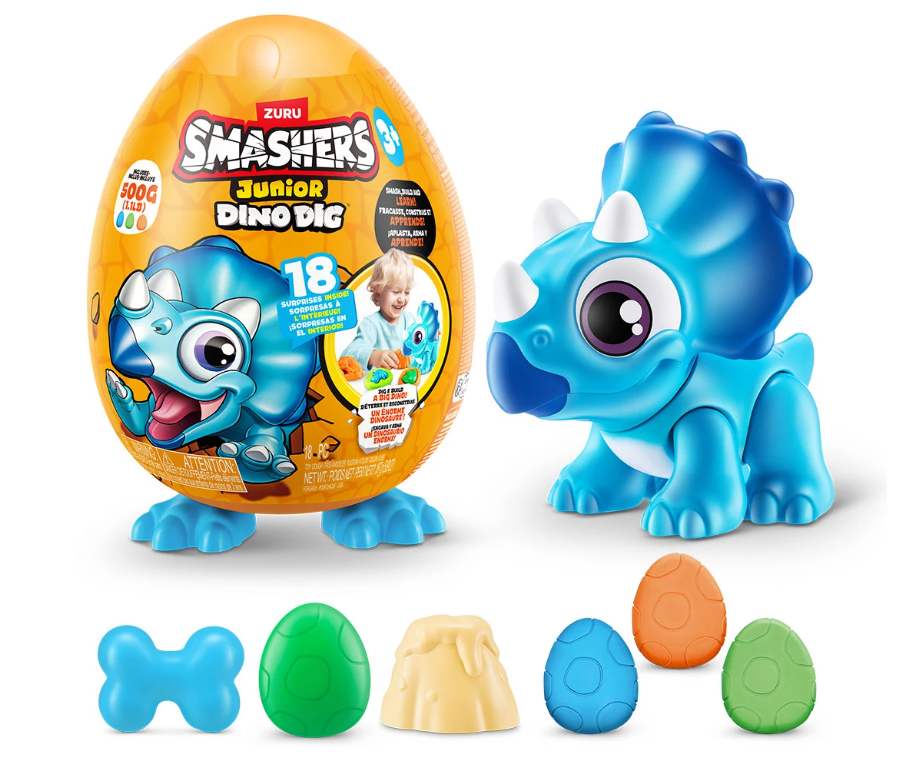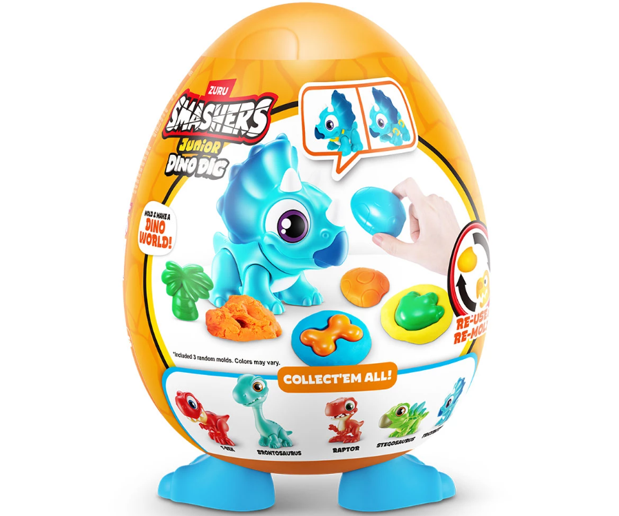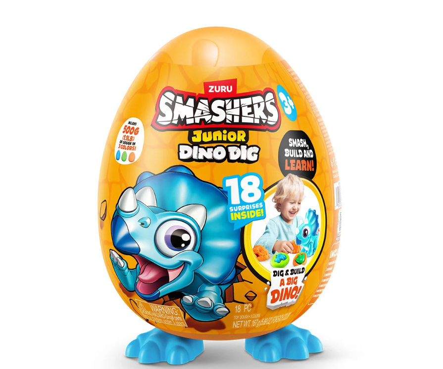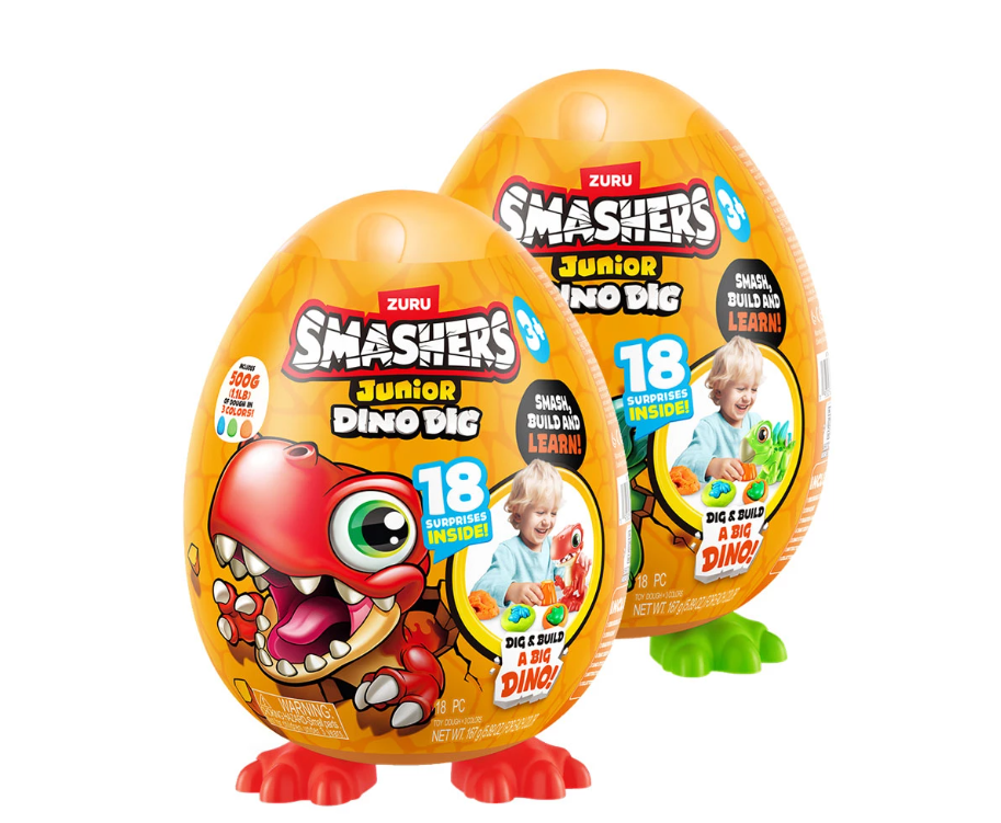 • Всяко Smasher Junior Dino Dig Egg се доставя с 1 динозавър, който може да се сглоби;