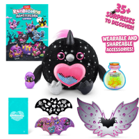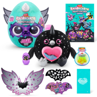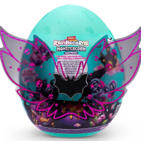 Rainbocorns Monstercorn Zuru Плюшена изненада, среден размер, с розови крила на черепи и звездички и сребрист рог