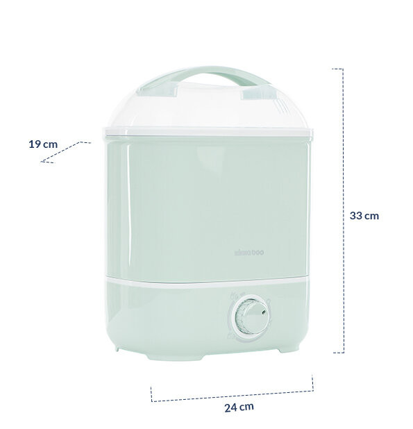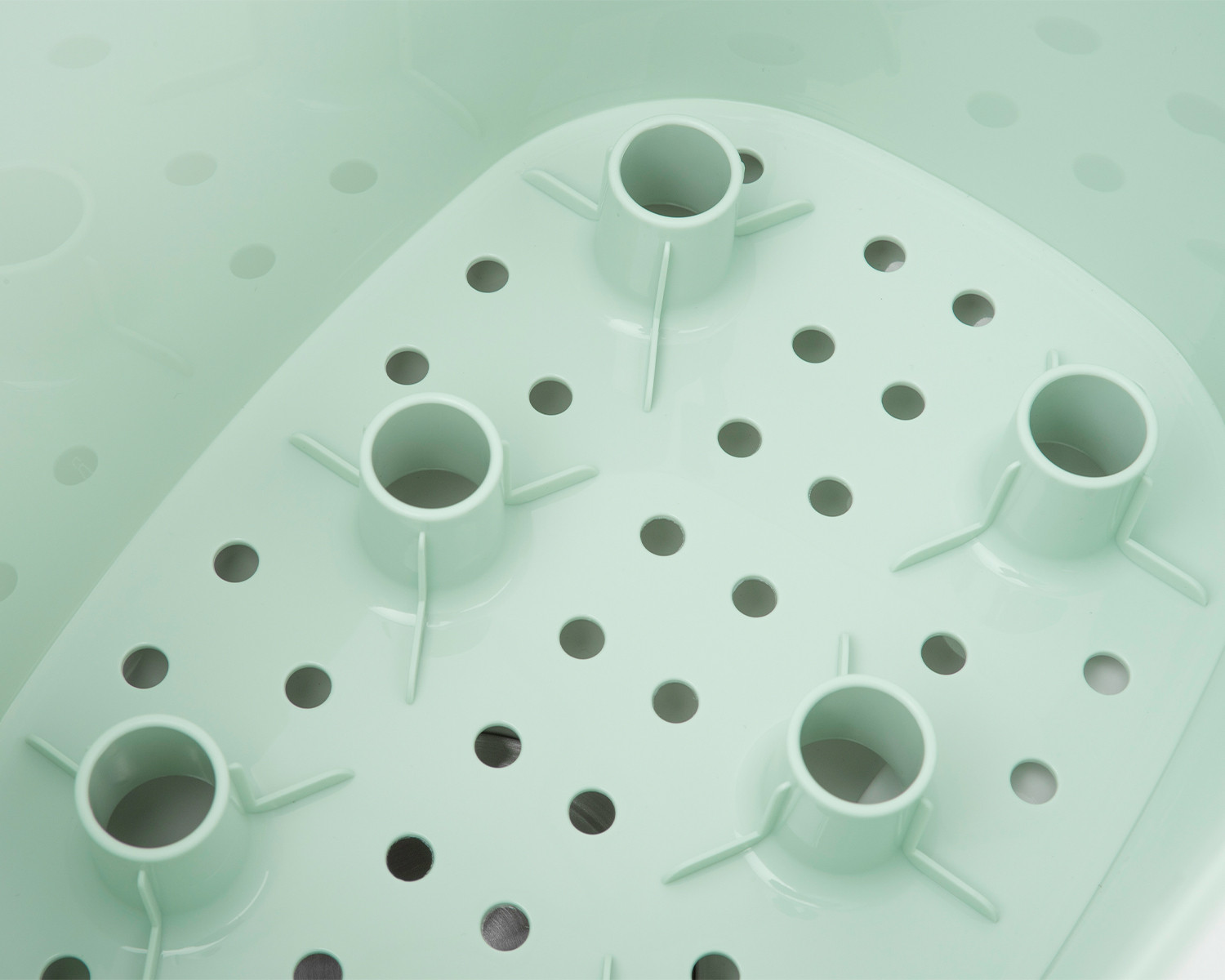 Голям капацитет - побира 6 различни по размер шишета и детски съдове;