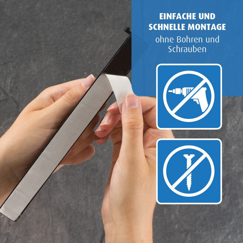 Монтаж без пробиване и завинтване със специално разработена лепяща лента, може да се отстрани без да оставя никакви остатъци;