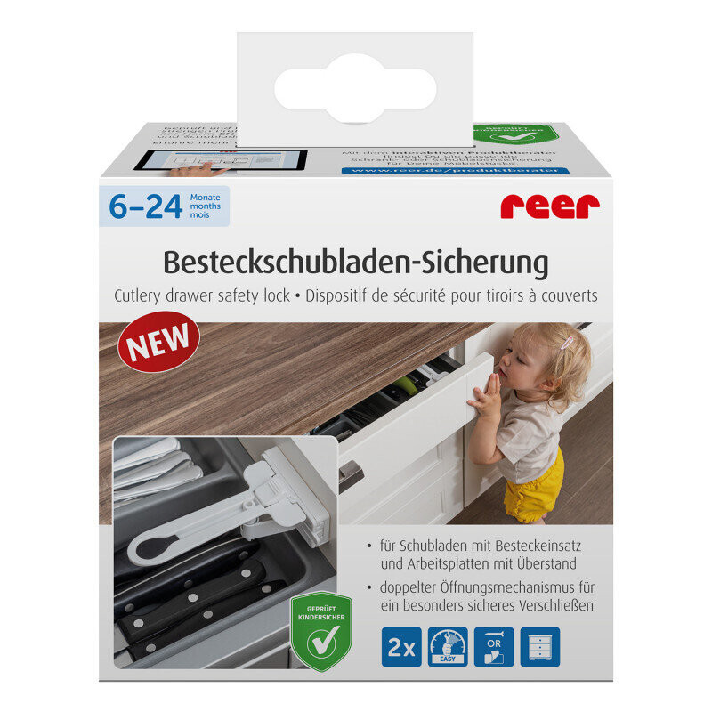 Бебешки и детски магазин "СЛАДУРЧЕТА" и марката "Reer" представят на Вашето внимание предпазно заключване на чекмедже за прибори със следните характеристики: