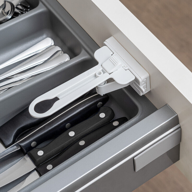 Предотвратява както отварянето, така и неволното затваряне на чекмеджетата;