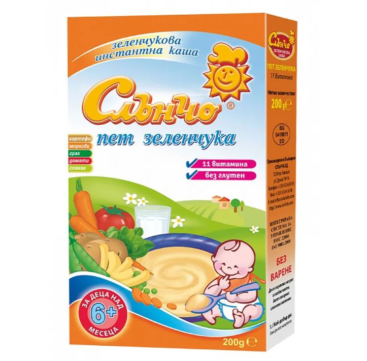 Бебешки и детски магазин "СЛАДУРЧЕТА" и марката "Слънчо" представят на Вашето внимание каша със следните характеристики: