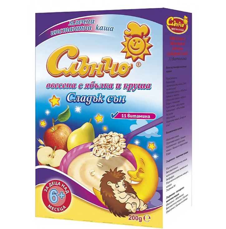 Бебешки и детски магазин "СЛАДУРЧЕТА" и марката "Слънчо" представят на Вашето внимание каша със следните характеристики: