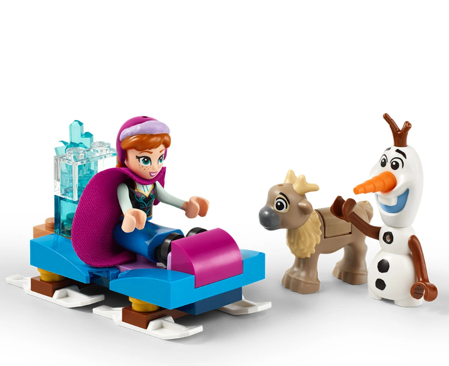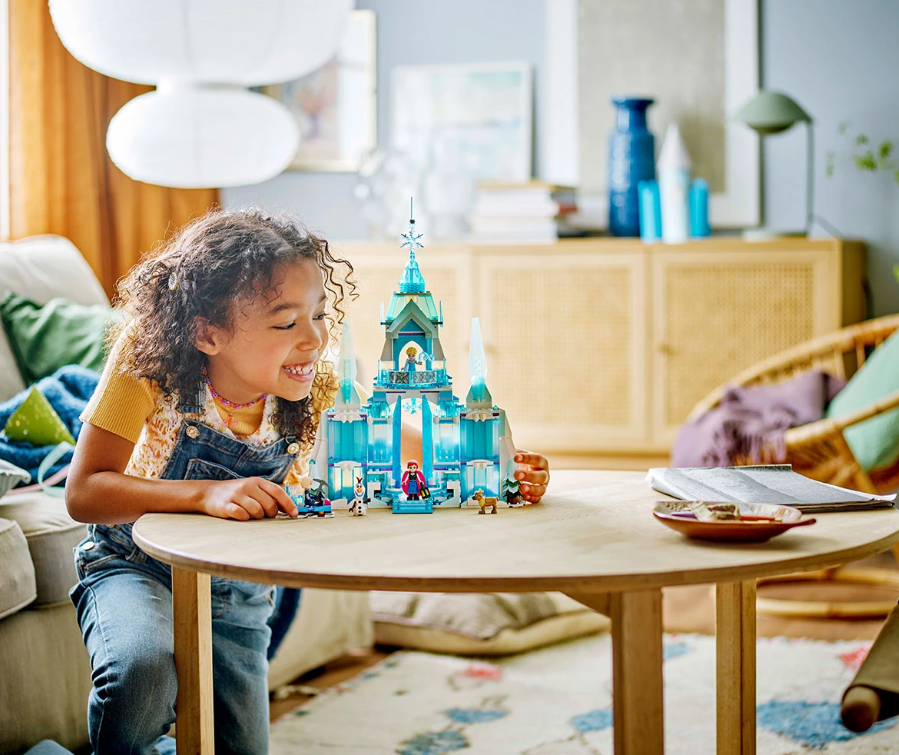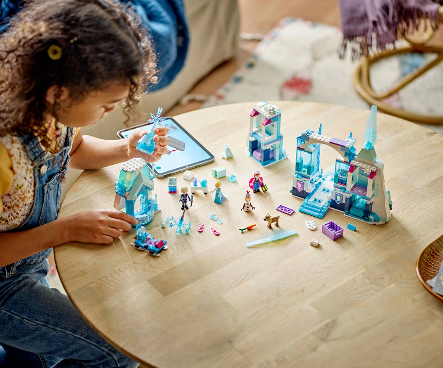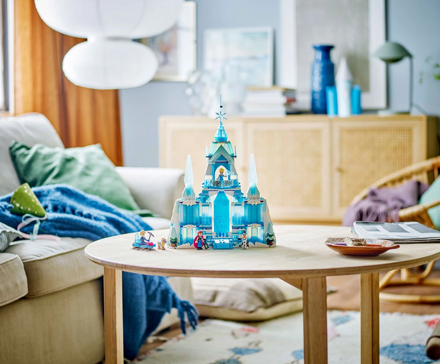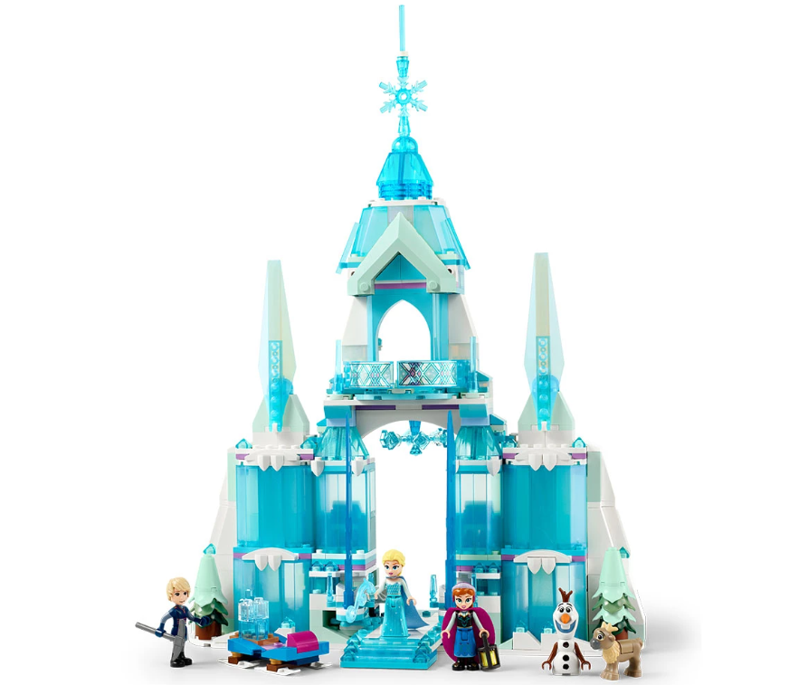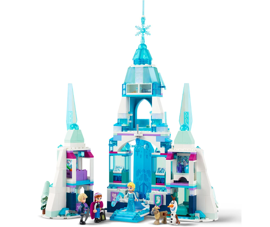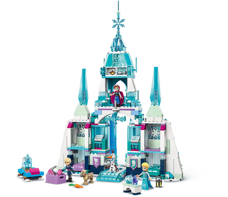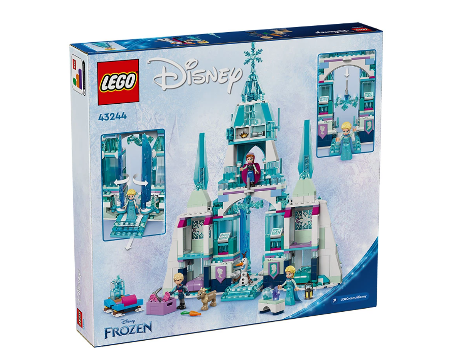 Включва леден дворец на 3 нива с кула, фигури миникукли на Елза, Анна и Кристоф от LEGO® ǀ Disney и фигура на снежния човек Олаф от LEGO ǀ Disney;