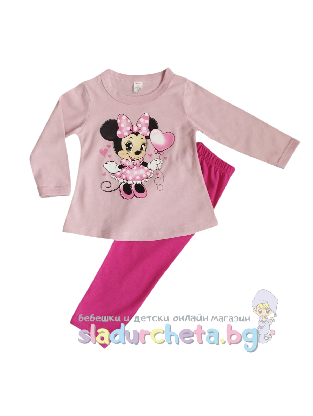Блузата е с дълъг ръкав в розов цвят с апликация на Мини Маус;
