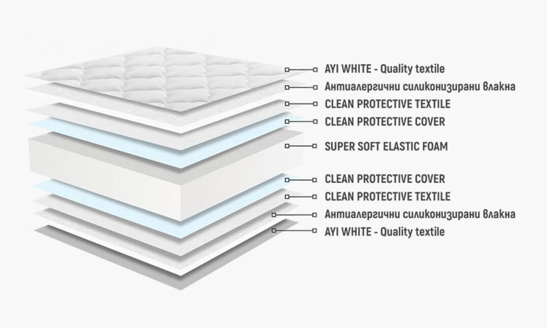• Еластичността и допълнителното омекотяване предлагат добър телесен комфорт при лежане, като поддържа перфектно детското тяло и помага на гръбначния стълб да заема естествената си форма по време на сън;