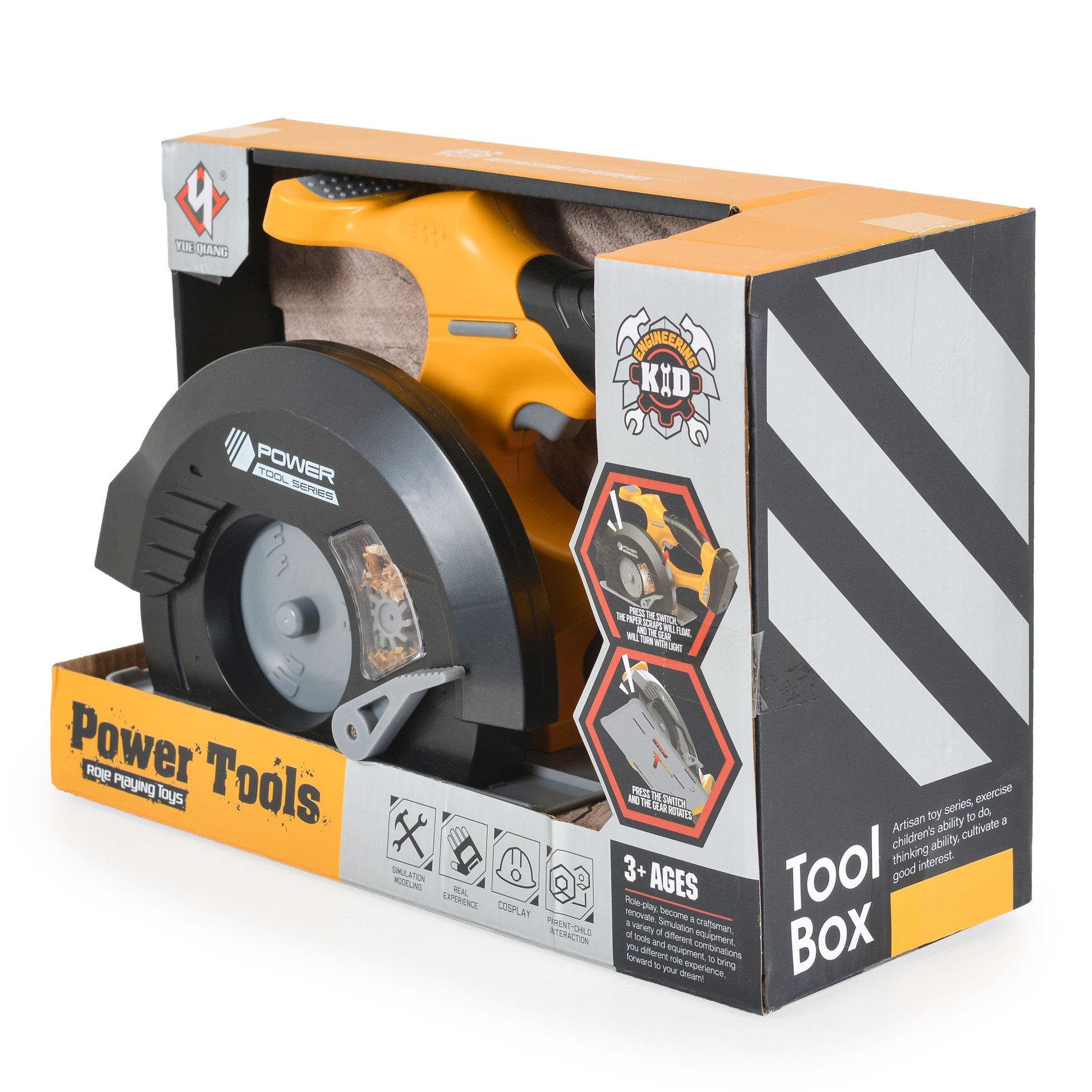Играчката имитира истинска циркулярна машина със своите звукови ефекти, което я прави перфектна за вълнуващи ролеви игри;