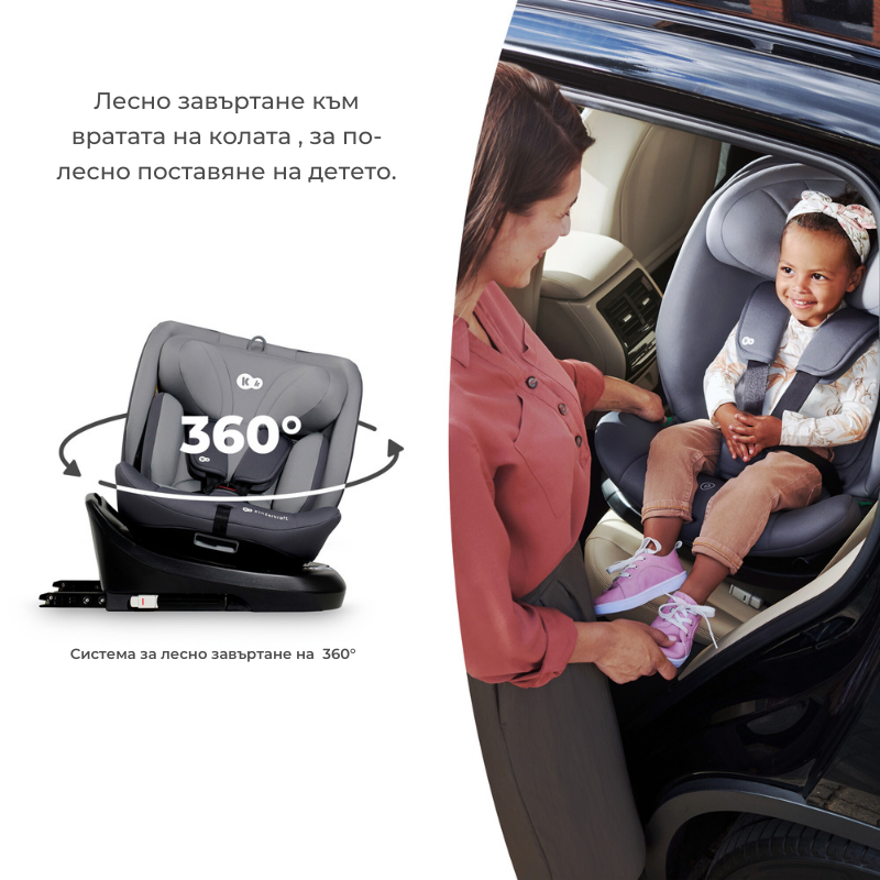 Благодарение на системата EASY SPIN 360° можете бързо да завъртите столчето за кола с лице към Вас, за да можете да закопчаете правилно детето;