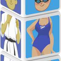 Комплектът включва: 3 магнитни кубчета за създаване на 6 различни спорта: сноуборд, колоездене, плуване, карате, футбол, тенис;