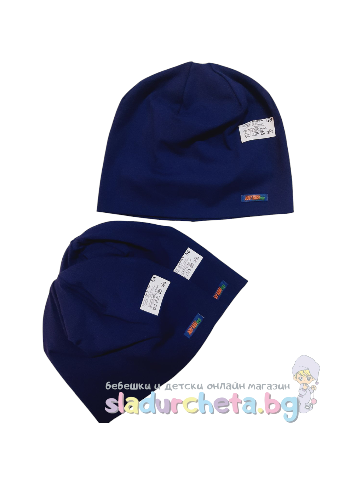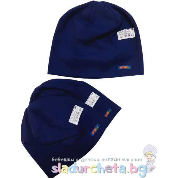 Шапката е в тъмносин цвят с изчистен дизайн;